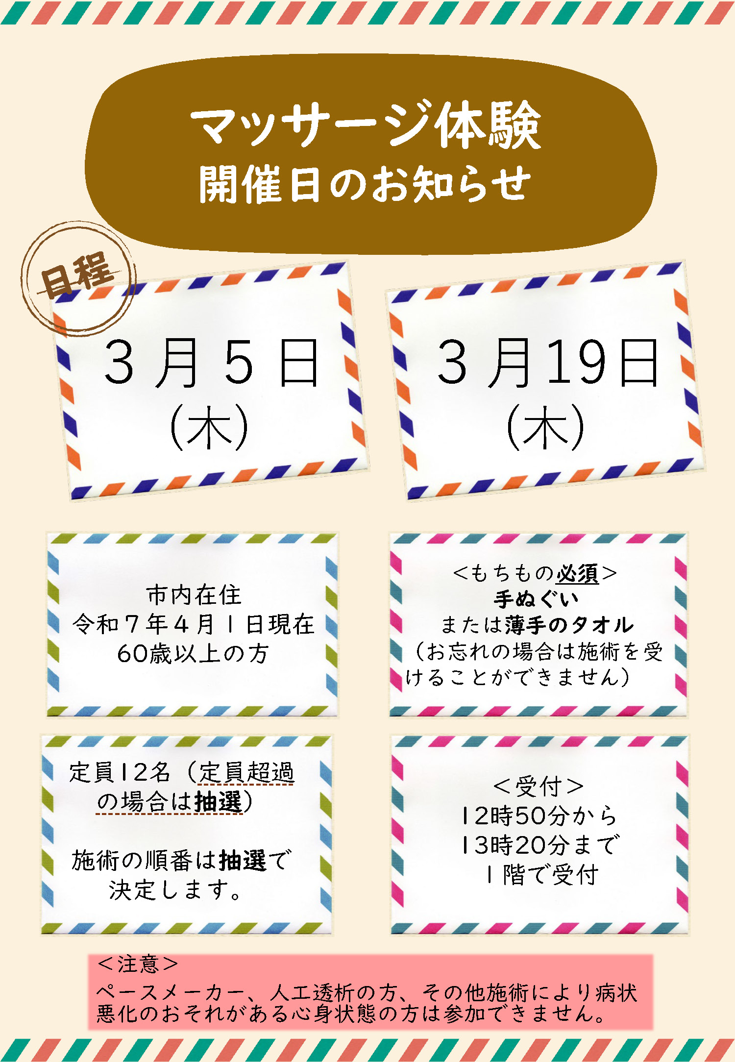 マッサージ体験 令和8年3月日程のお知らせ